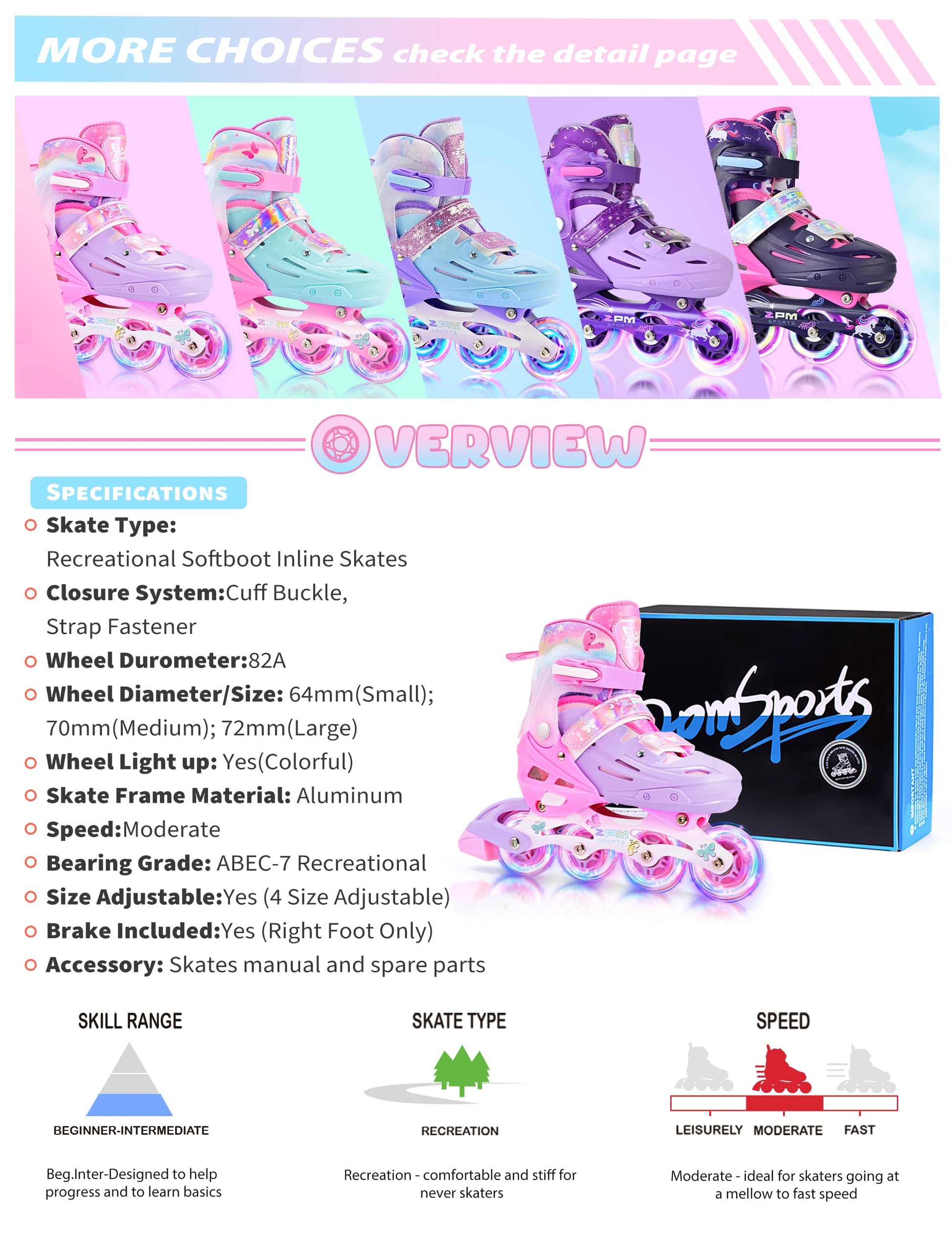 SULIFEEL Inline Skates for Kids, Adjustable Children's Roller Skates Blades