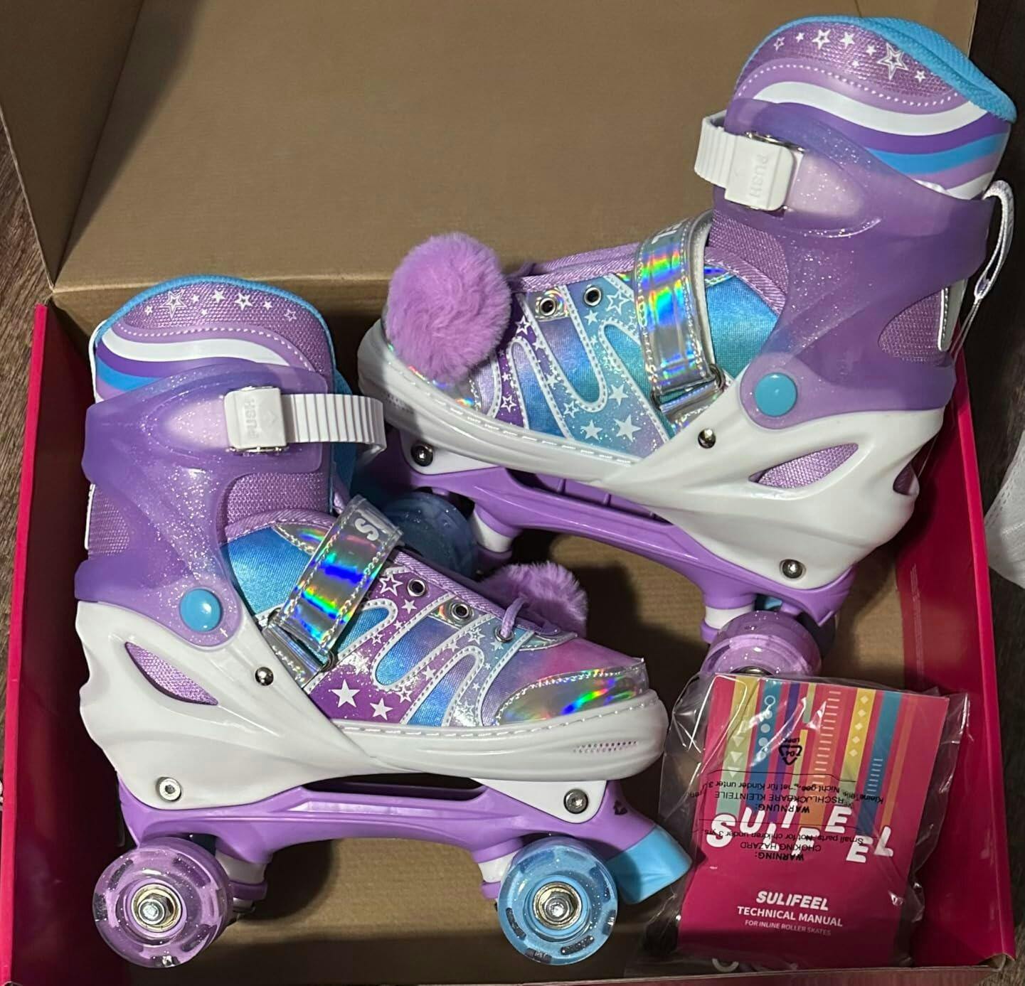 SULIFEEL Rainbow Tie-Dye Adjustable Roller Skates for Indoor Outdoor Skating