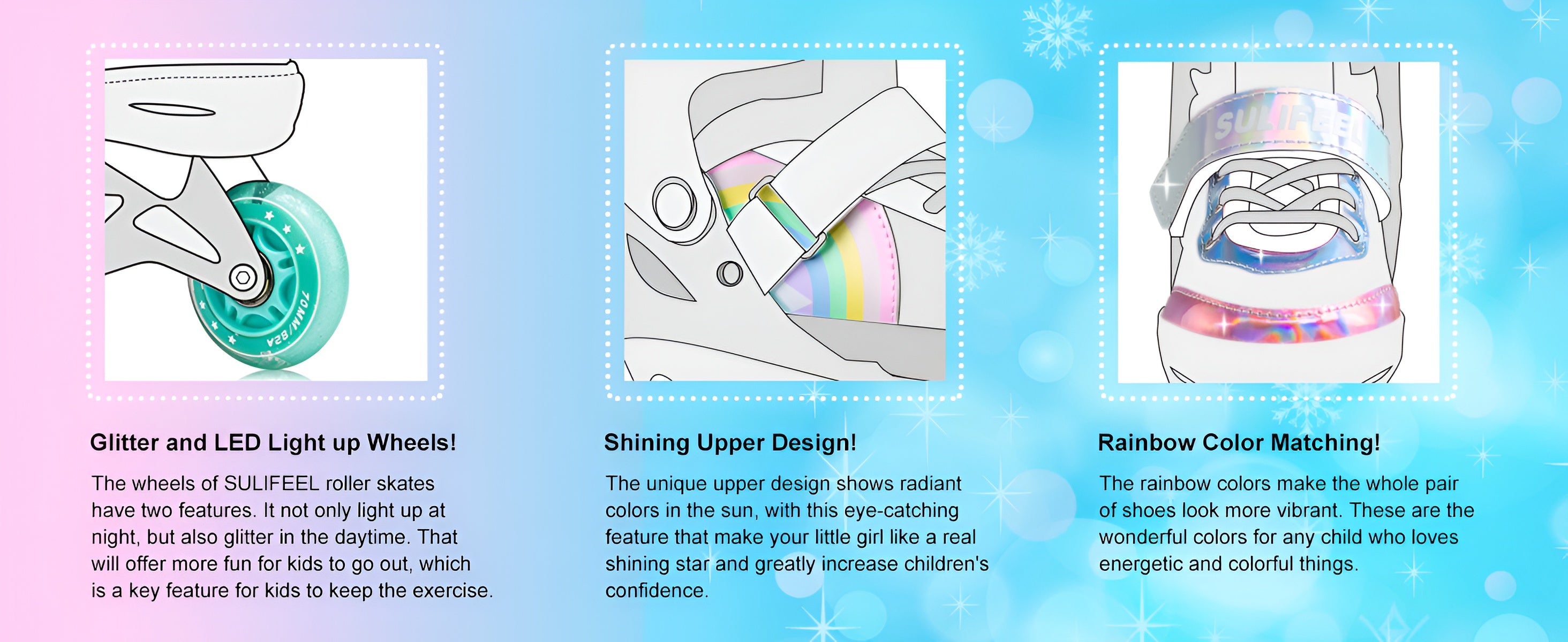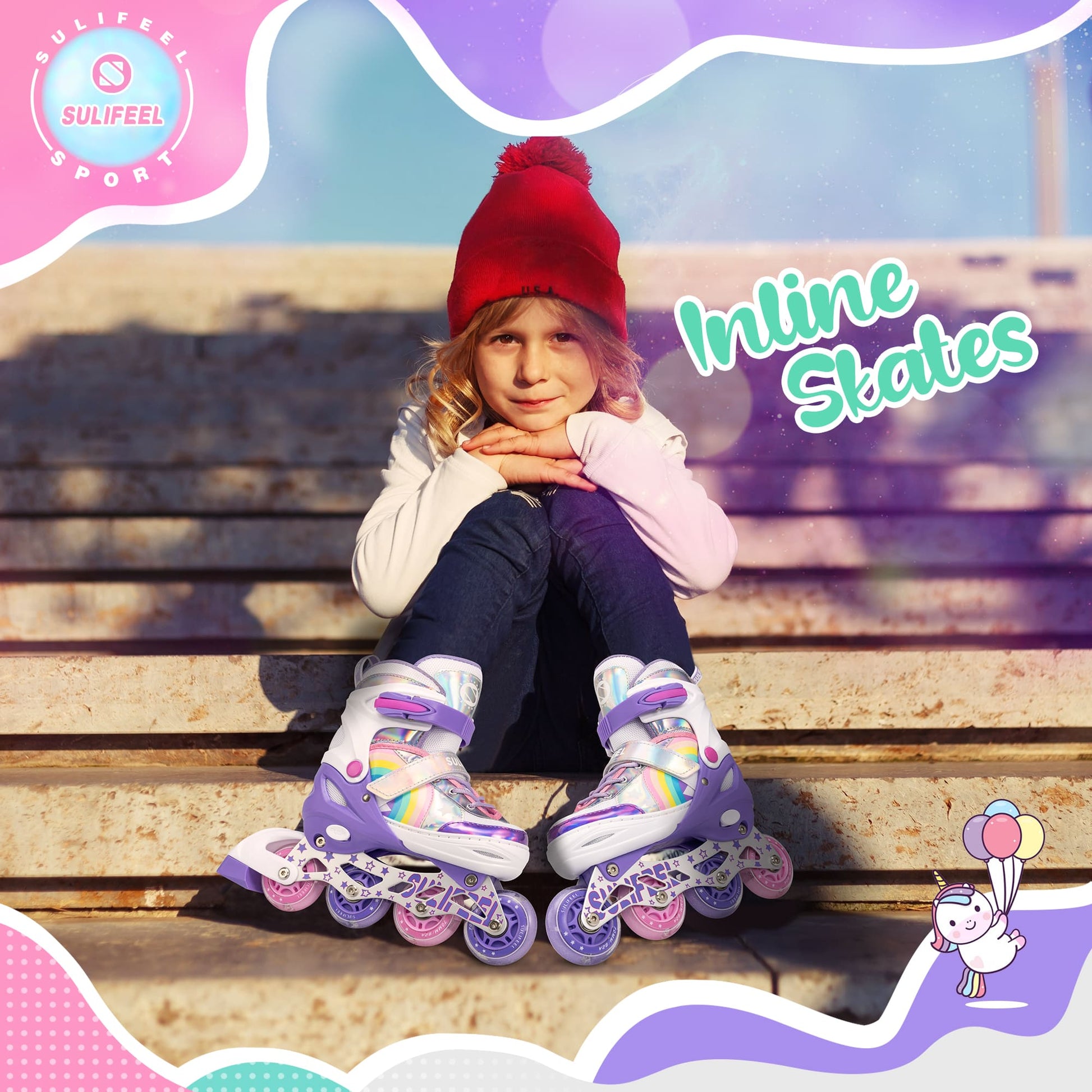 SULIFEEL Inline Skates for Girls Boys, Adjustable Light up Wheels Skates for Kids Beginner
